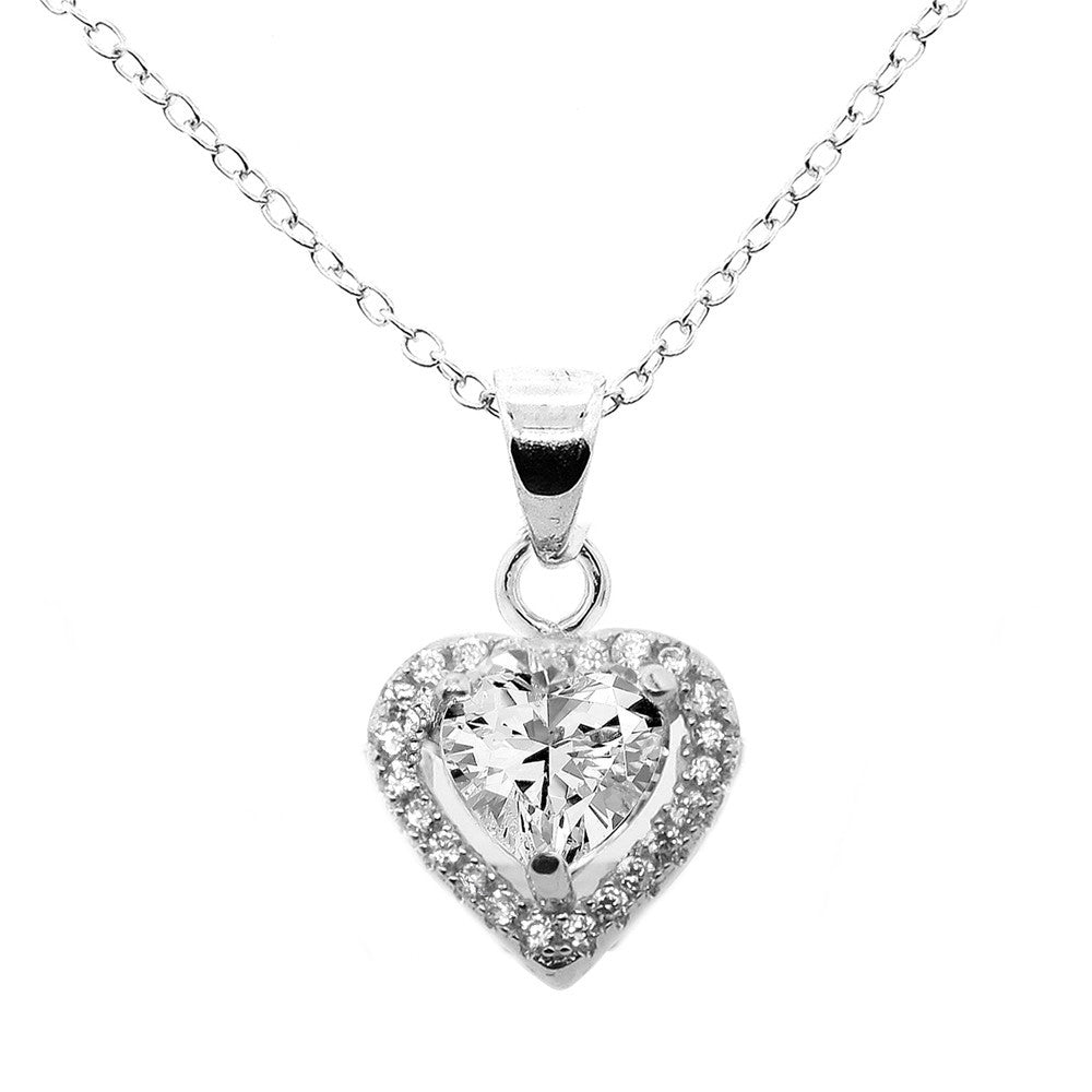 Amora 18k White Gold Plated Halo Heart Pendant Necklace: