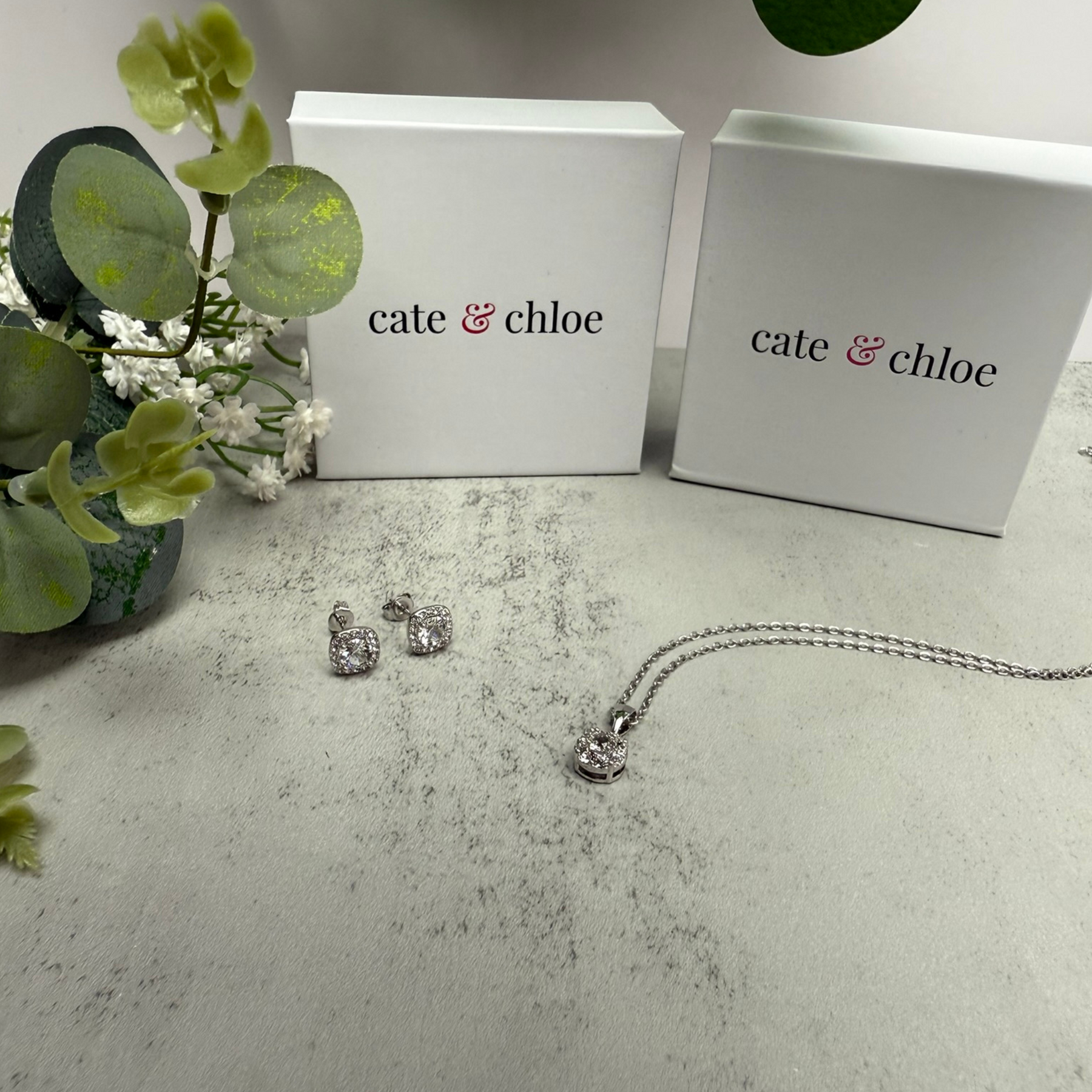 This beautiful jewelry set offered by Cate & Chloe will be sure to turn heads. With a pair of stud earrings & a matching necklace with flawless Swarovski crystals, you can be the talk of your next night out or a gift-giving hero without breaking the bank!