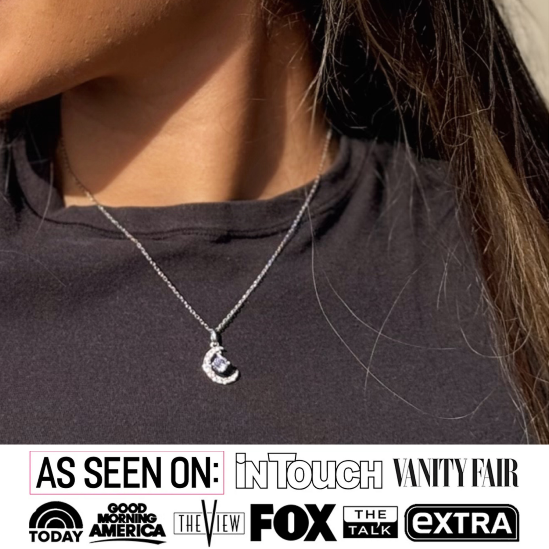 These birthstone necklaces feature a stunning crescent pendant design adorned with premium-grade round-cut crystals that offer just the right amount of sparkle to complement any outfit for any occasion. The 18k white gold plated brass material provides a luxurious look and feel, making it the perfect fashion accessory.