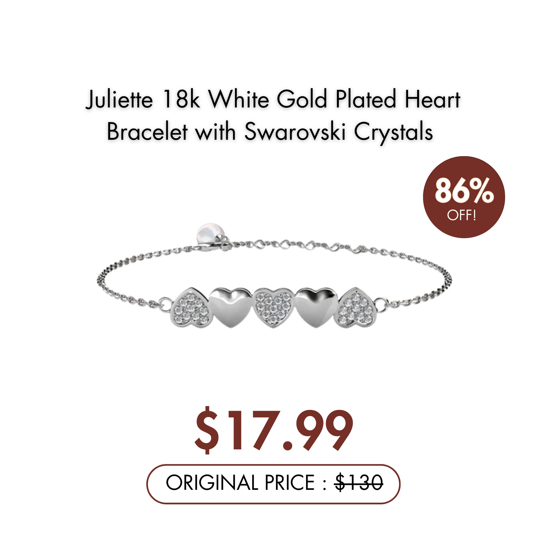 Juliette 18k White Gold Plated Heart Bracelet with Swarovski Crystal