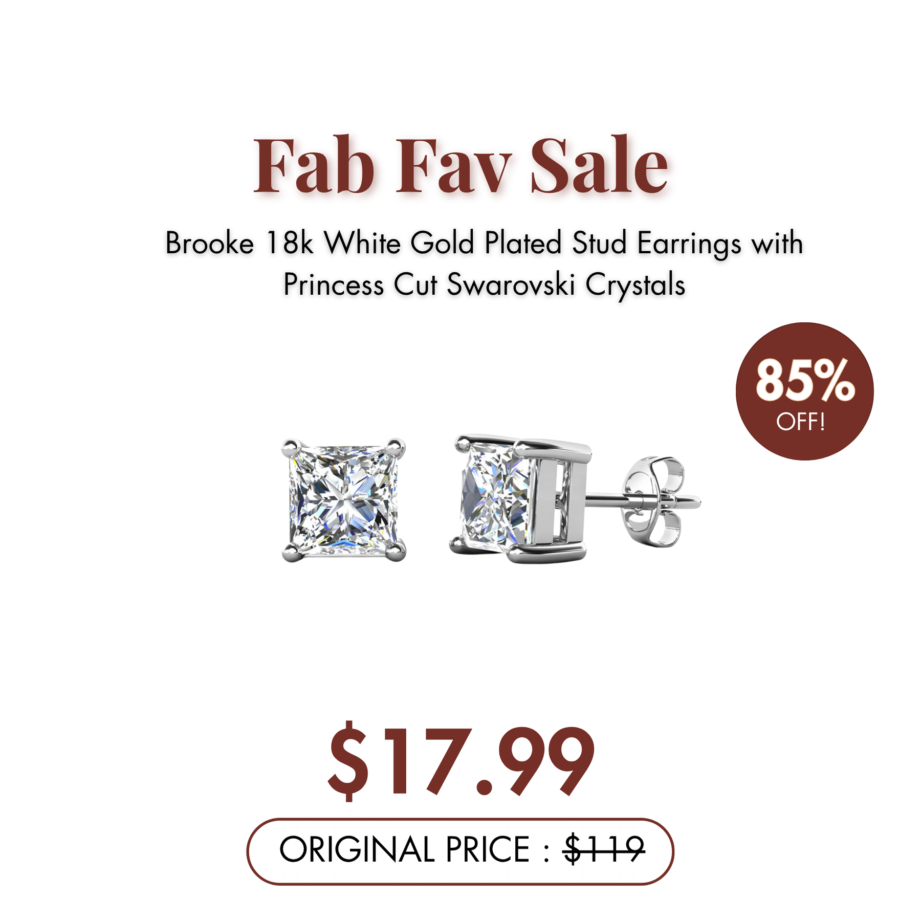 Brooke 18k White Gold Plated Stud Earrings with Princess Cut Swarovski Crystals