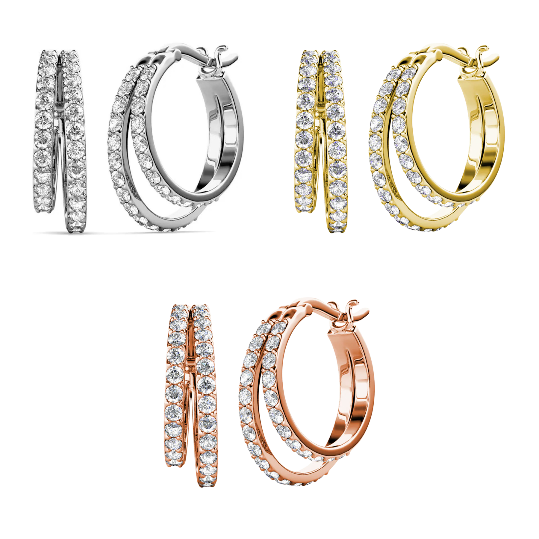 Pack of 3 - Corina 18k White Gold Plated 20mm Hoop Earrings with Swarovski Crystals