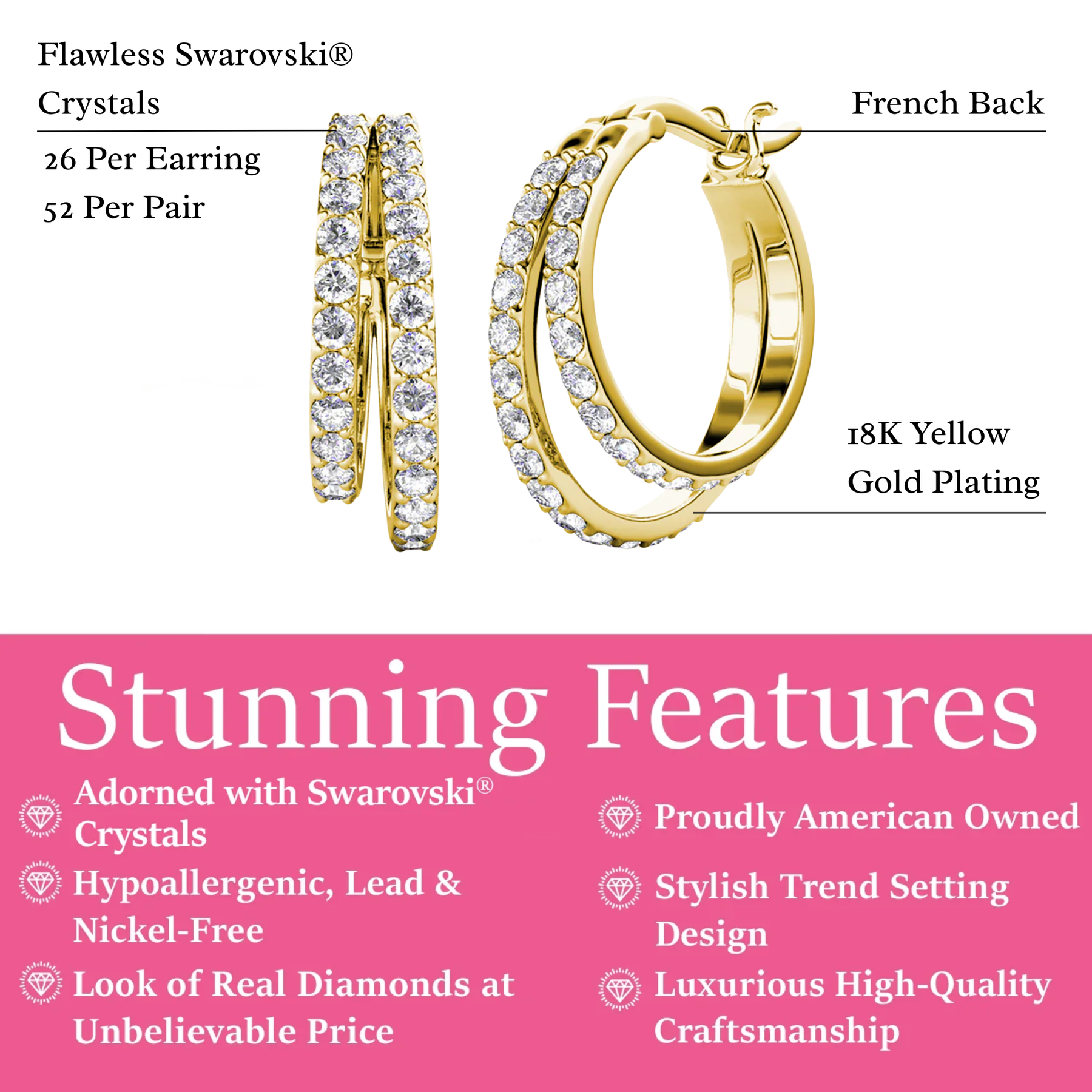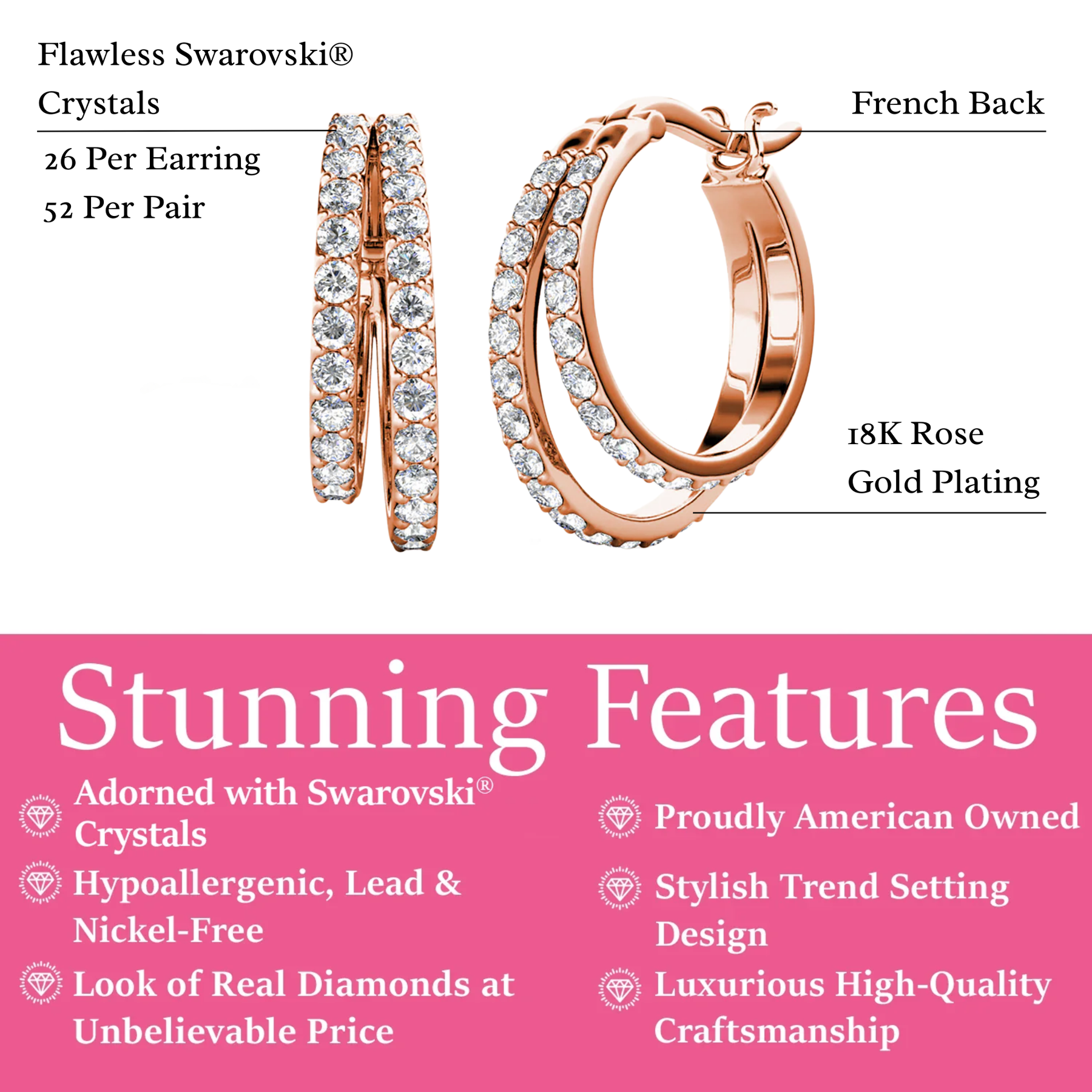 • Stone Count: 26 Accent Stones | 52 Pair Total