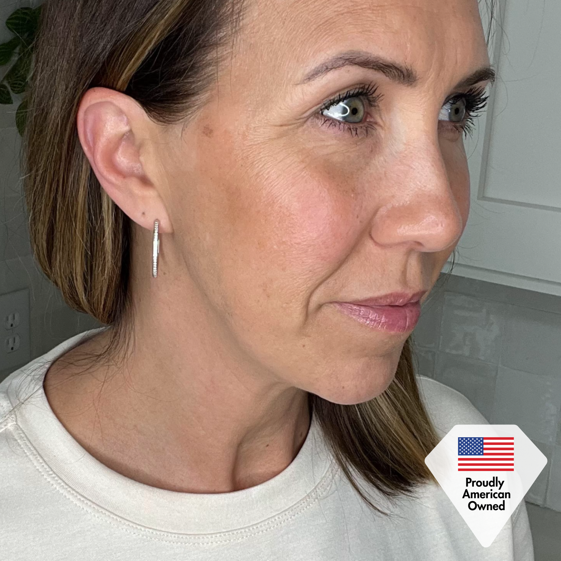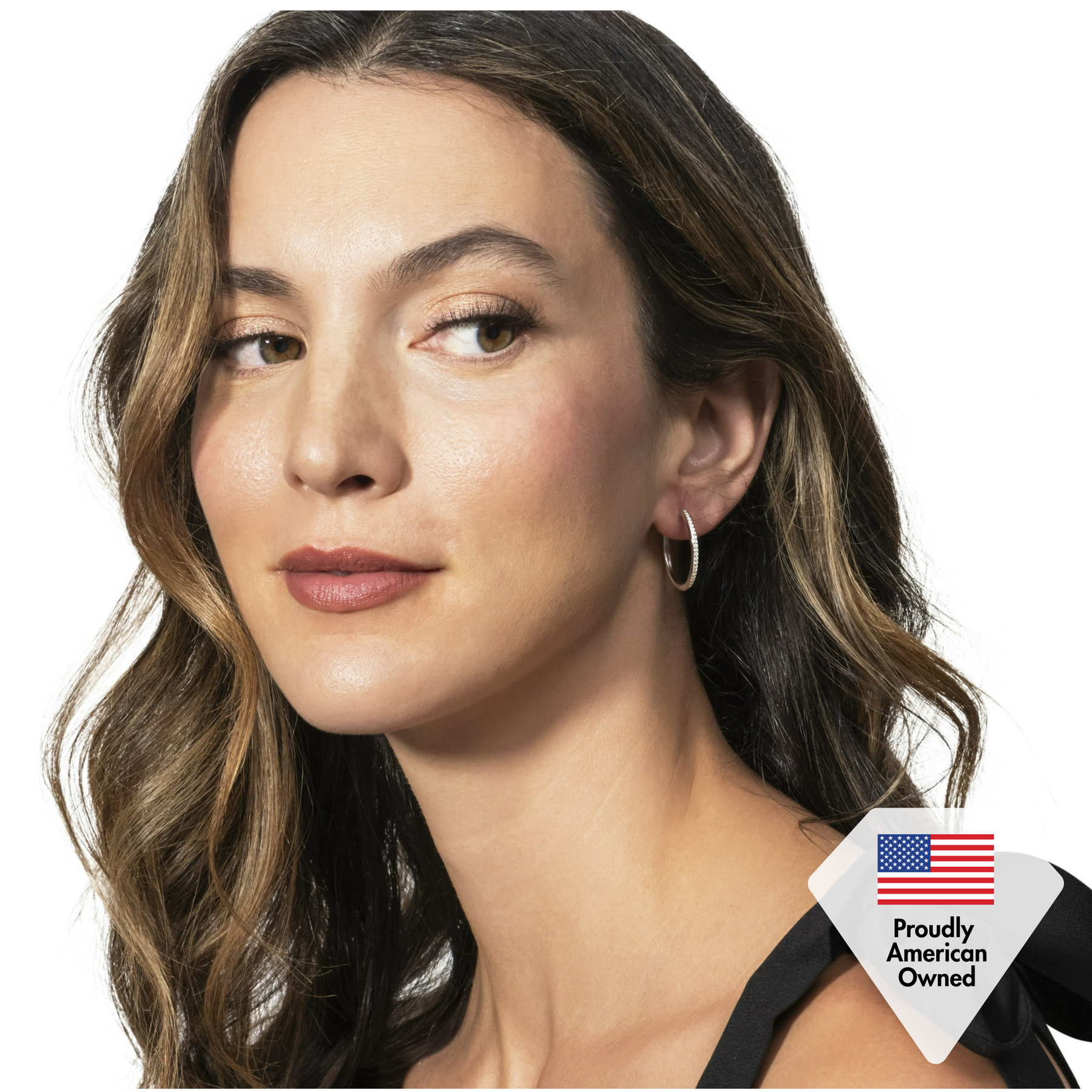 Introducing the Cate & Chloe Signature CollectionDelaney Sterling Silver Hoop Earrings, perfect for any fashion-conscious woman. Made with high-quality materials, these earrings are crafted from sterling silver and 18k white gold plating, ensuring durability and longevity. The stones used in these earrings are Moissanite crystals, offering a brilliant sparkle that will catch everyone's eye. The round-cut crystals are carefully positioned in a classic design, giving the earrings a timeless elegance that can be paired with any outfit.