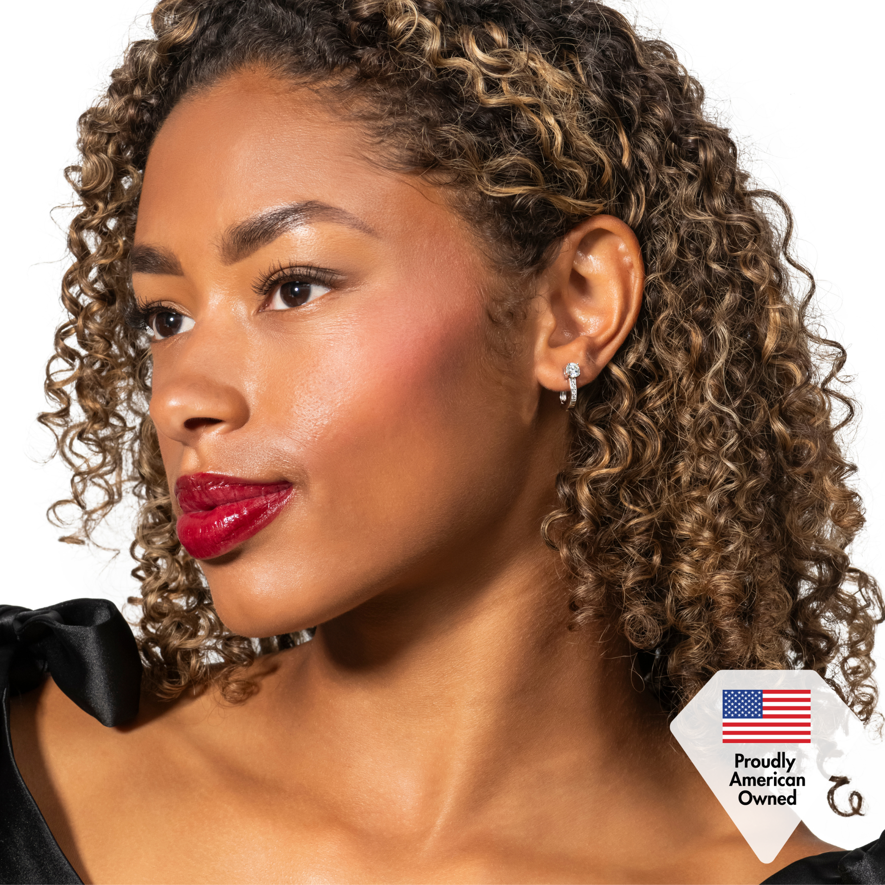 Introducing the Cate & Chloe Signature Collection — Genesis Sterling Silver Hoop Earrings, perfect for any fashion-conscious woman. Made with high-quality materials, these earrings are crafted from sterling silver and 18k white gold plating, ensuring durability and longevity. The stones used in these earrings are Moissanite crystals, offering a brilliant sparkle that will catch everyone's eye. The round-cut crystals are carefully placed in a classic design, giving the earrings a timeless elegance that can be paired with any outfit.