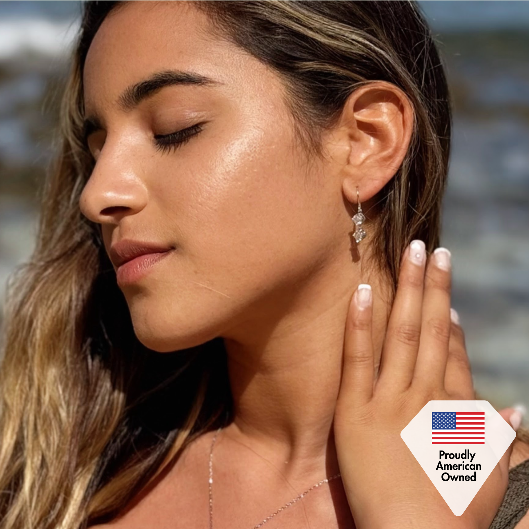Introducing the Cate & Chloe Signature CollectionTalia Sterling Silver Dangle Earrings, perfect for any fashion-conscious woman. Made with high-quality materials, these earrings are crafted from sterling silver and 18k white gold plating, ensuring durability and longevity. The stones used in these earrings are Moissanite crystals, offering a brilliant sparkle that will catch everyone's eye. The round-cut crystals are carefully crafted in a classic design, giving the earrings a timeless elegance that can be paired with any outfit.
