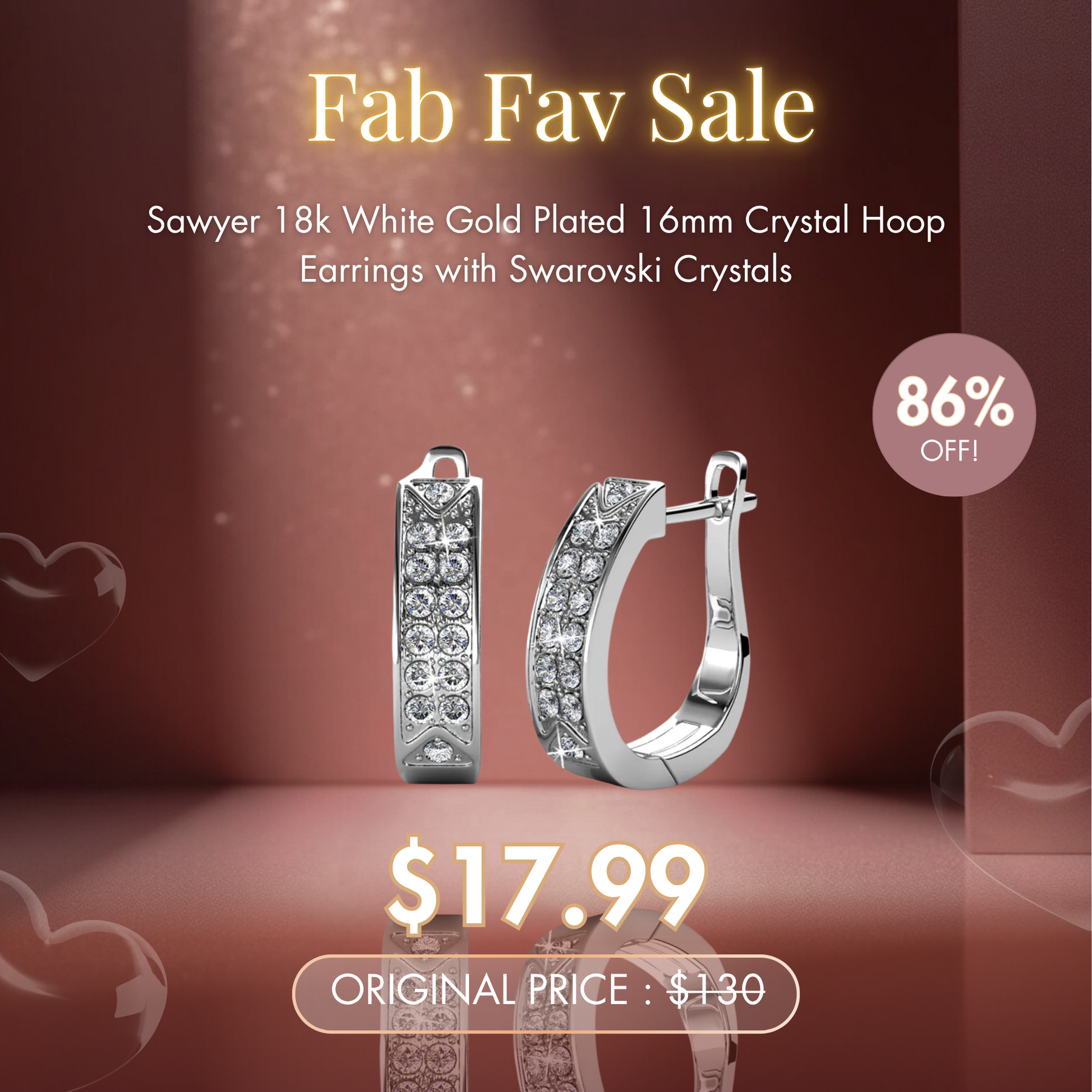 Sawyer 18k White Gold Plated Crystal Hoop Earrings with Swarovski Crystals