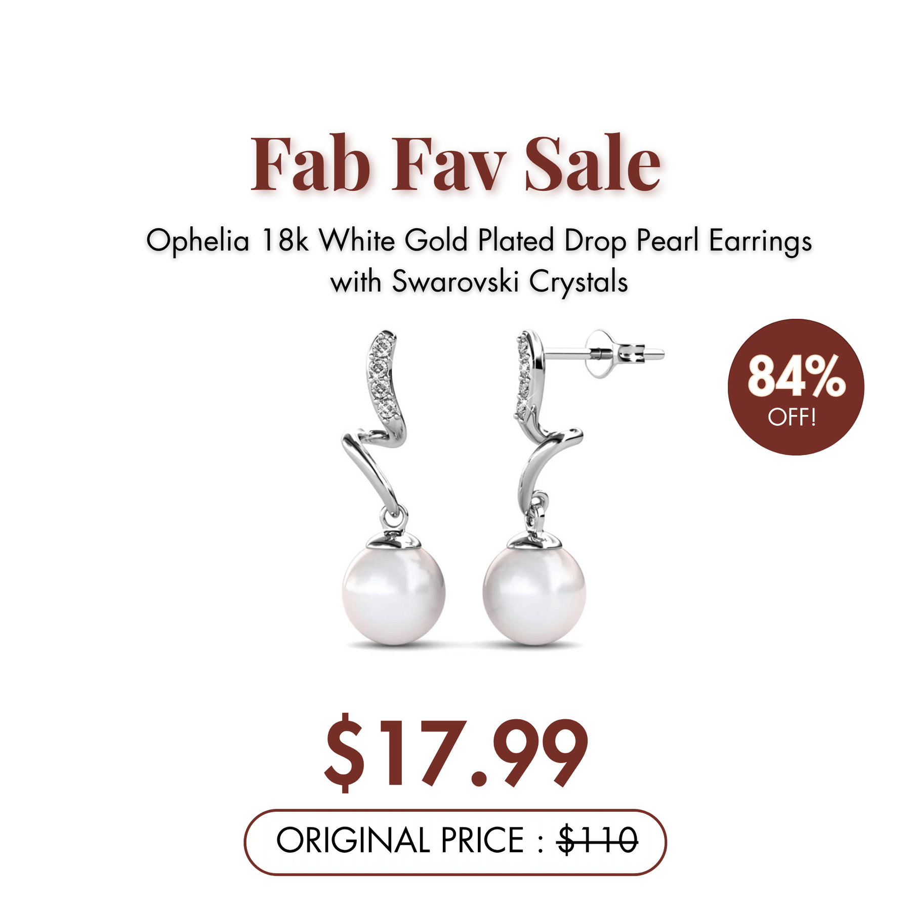 Ophelia 18k White Gold Plated Drop Pearl Earrings with Swarovski Crystals — Fab Fav Sale