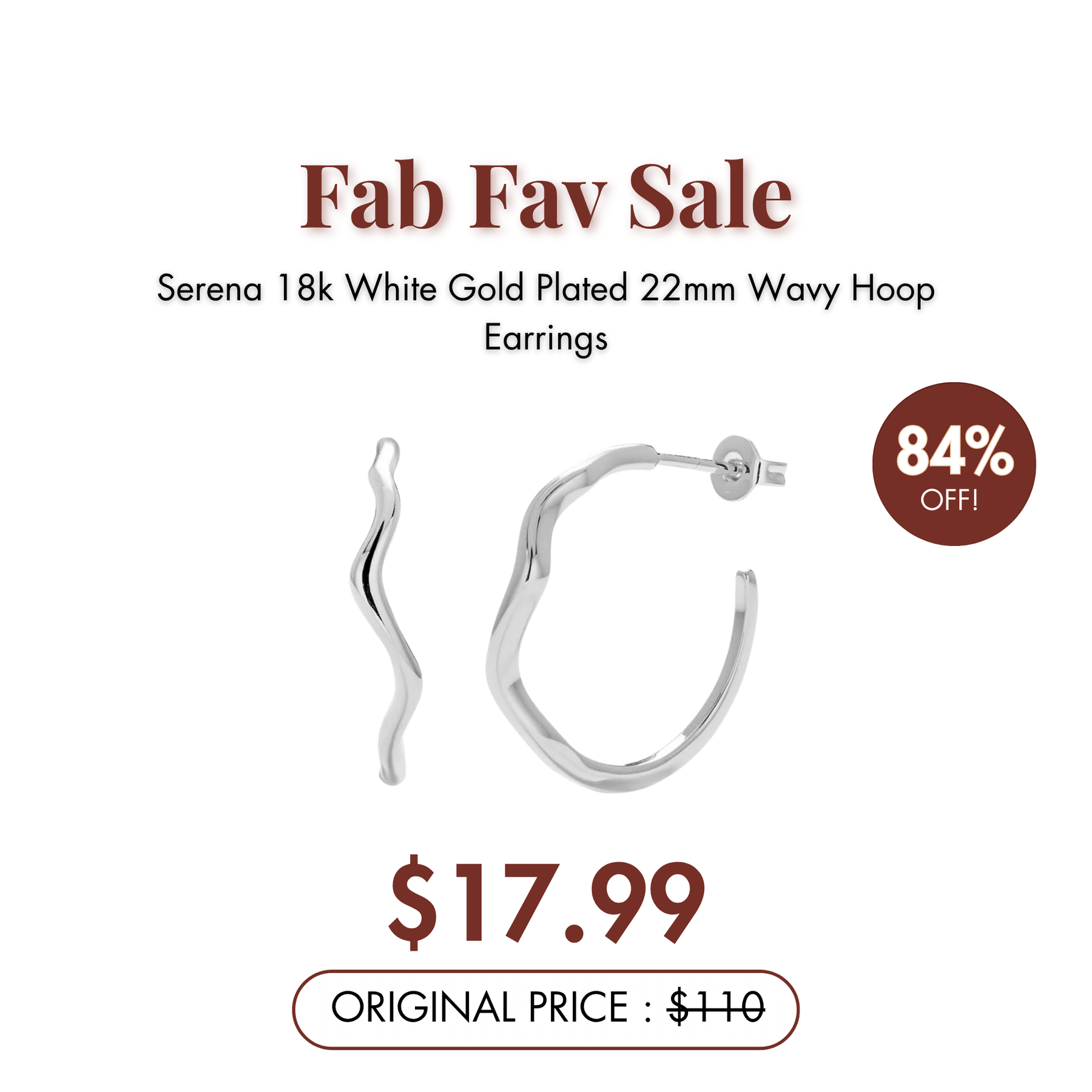 Elevate your style with the Serena 18K White Gold Plated 22mm Wavy Hoop Earrings from Cate & Chloe Jewelry. Featuring a modern wavy design and luminous 18K white gold plating, these lightweight hoops transition effortlessly from office to evening. Perfect for gifting or adding timeless elegance to your collection.
