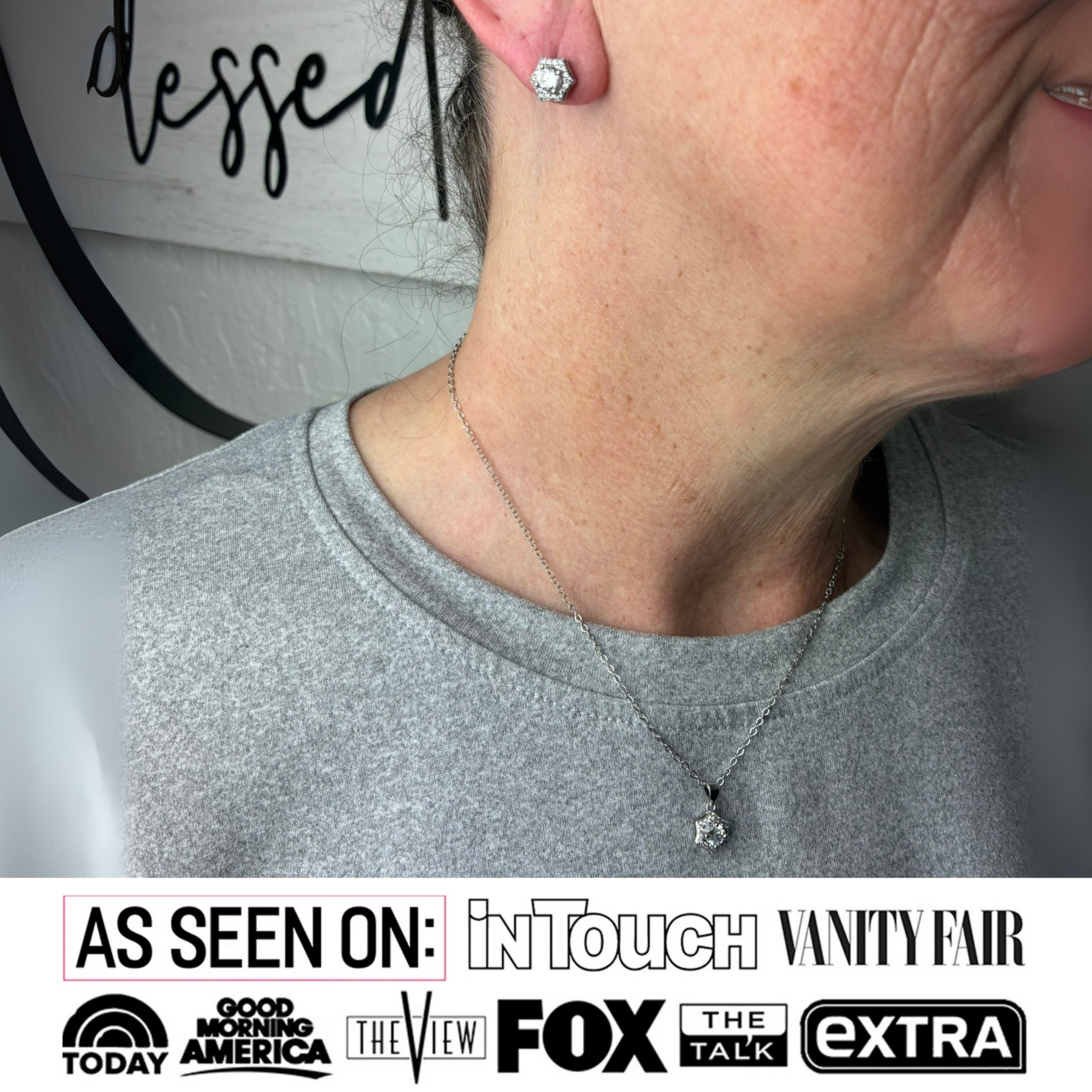 Poppy 18k White Gold Plated Pendant Necklace & Stud Earrings Set with Simulated Diamond Crystals