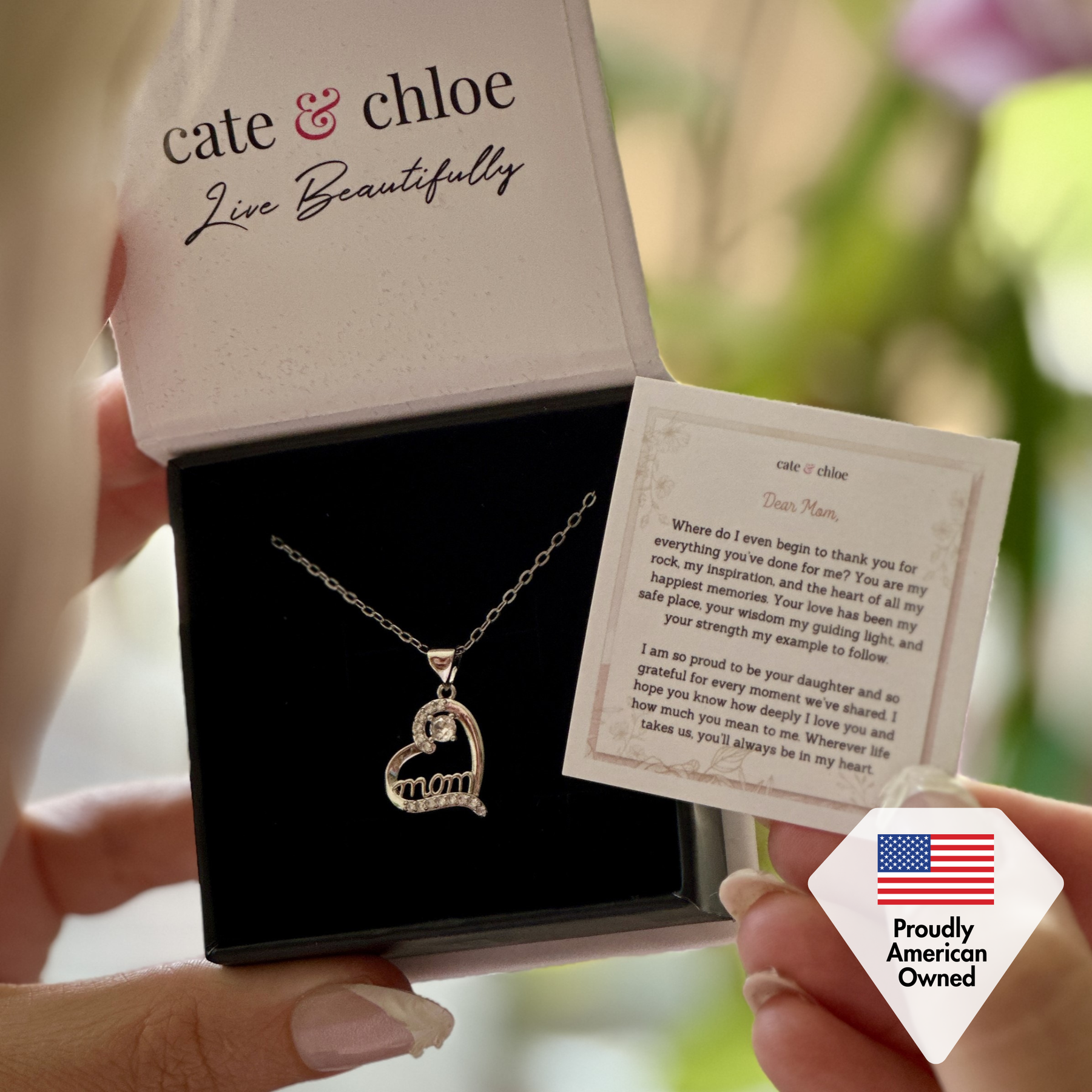 Thelma 18k White Gold Plated Necklace with Swarovski Crystals & Heartfelt Message for Mom