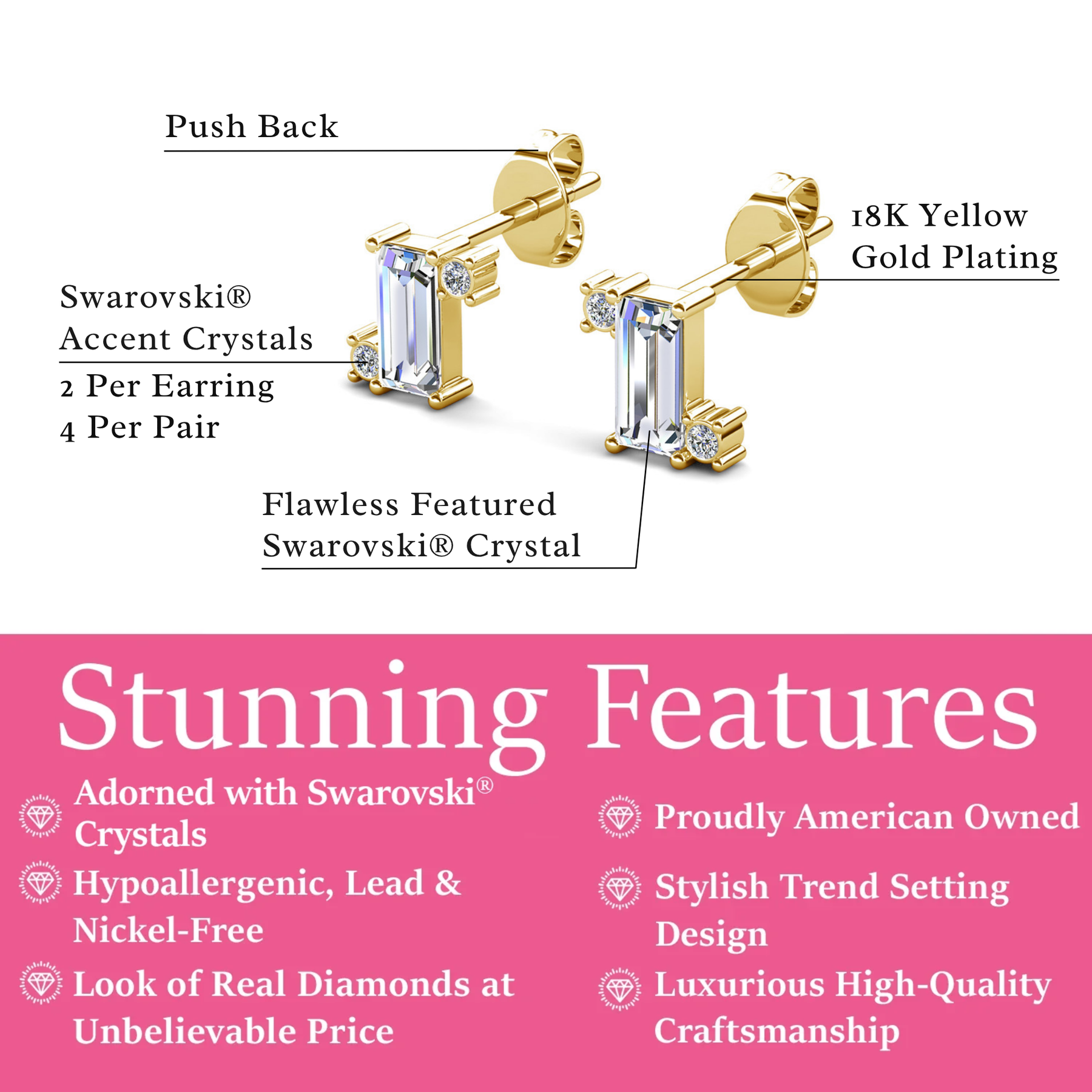 • Stone Count: 2 Featured | 4 Accent Stones Per Pair