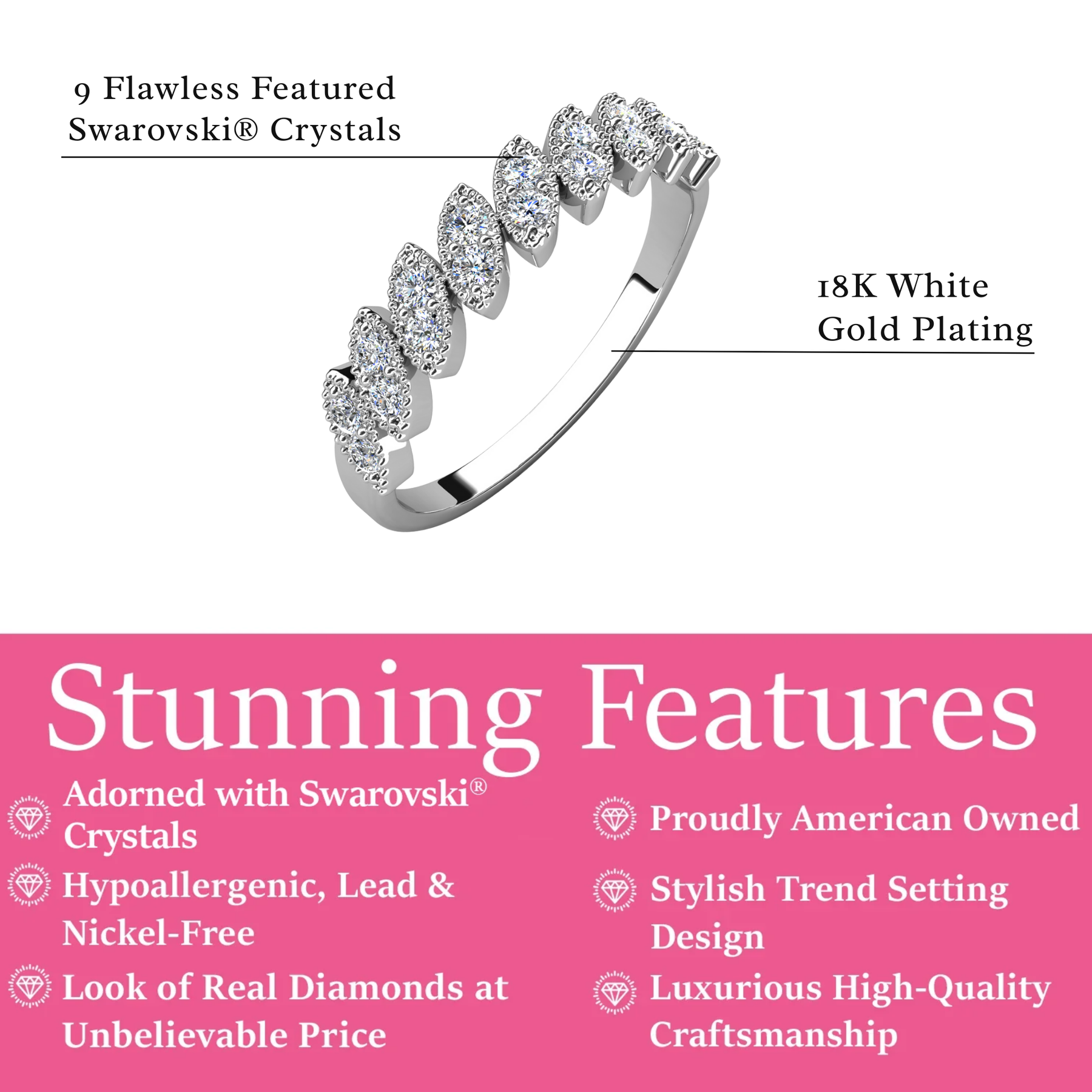 Tori 18k White Gold Plated Band Ring with Round Cut Swarovski Crystals