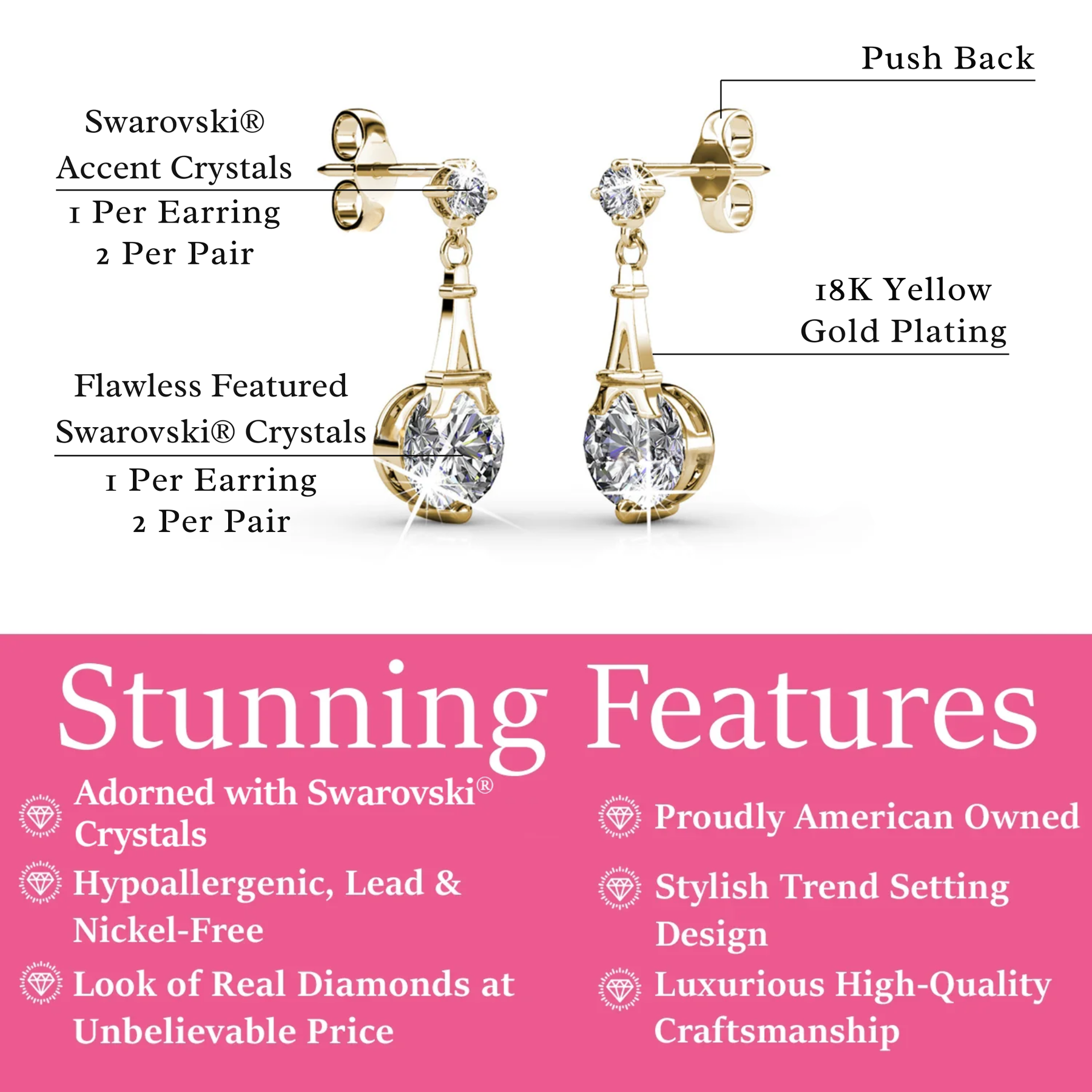 • Stone Count: 2 Featured | 2 Accent Stones Per Pair