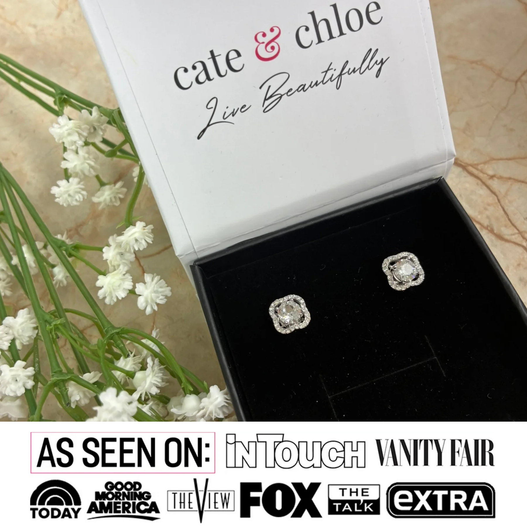 Haddie 18k White Gold Plated 2-in-1 Halo Stud Earrings with Swarovski Crystals