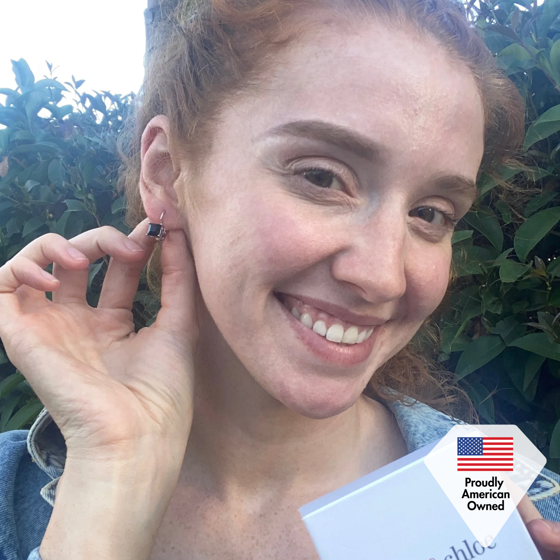 A timeless blend of sophistication and charm. These earrings feature 6mm exquisite princess-cut black-colored crystals, exuding classic elegance. Mounted in a lustrous 18k white gold plated drop framework, these earrings are designed to captivate attention and illuminate your evening with their irresistible sparkle.