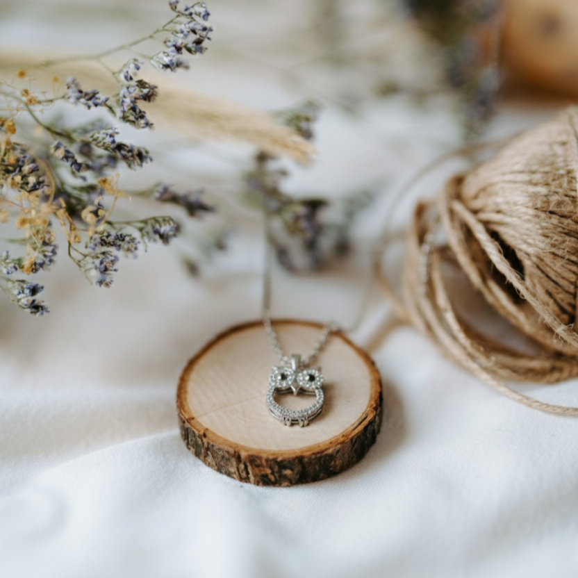 A truly one of kind piece - wearing an owl symbol signifies wisdom, knowledge, awareness, and intuition for the coming ages! The perfect gift idea for any occasion! Look stunning and turn heads with this beautiful new fashion women's 18k white gold baby owl pendant necklace.
