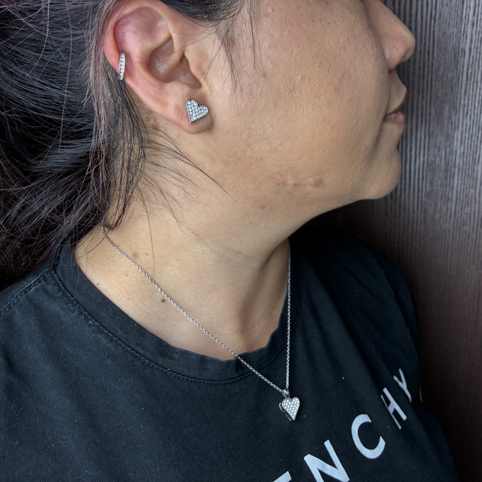 Cecilia 18k White Gold Heart Necklace and Stud Earrings Jewelry Set with Crystals