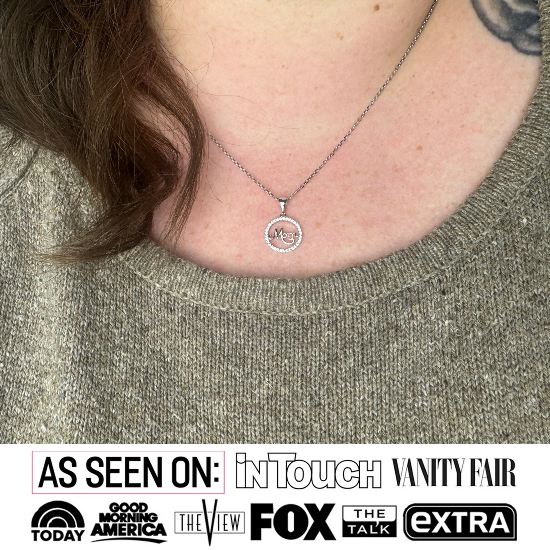 Brandy 18k White Gold Plated Circle Mom Necklace with Swarovski Crystals