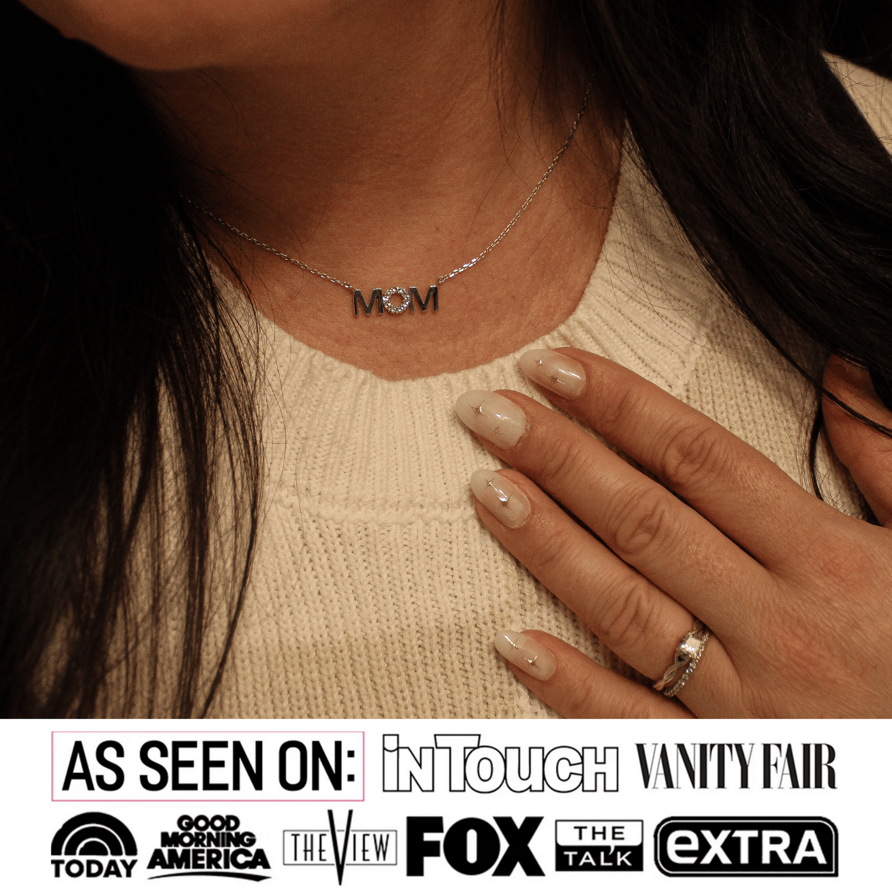 The Savannah Mom Necklace combines modern elegance with heartfelt sentiment. Featuring the word "MOM" adorned with sparkling Swarovski® crystals, this necklace shines with subtle sophistication. The 18k white gold plating over hypoallergenic brass adds a radiant finish that complements any outfit.