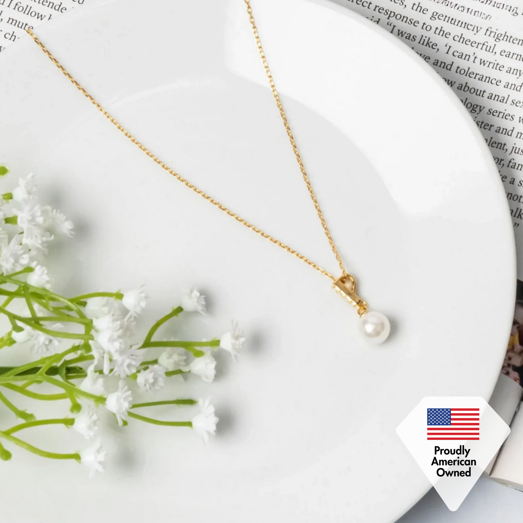 这款珍贵而完美的珍珠项链将帮助您从人群中脱颖而出! Gabrielle 的特点是一排宝石落入珍珠水滴状,全部镶嵌在 18k 白金镀层中。