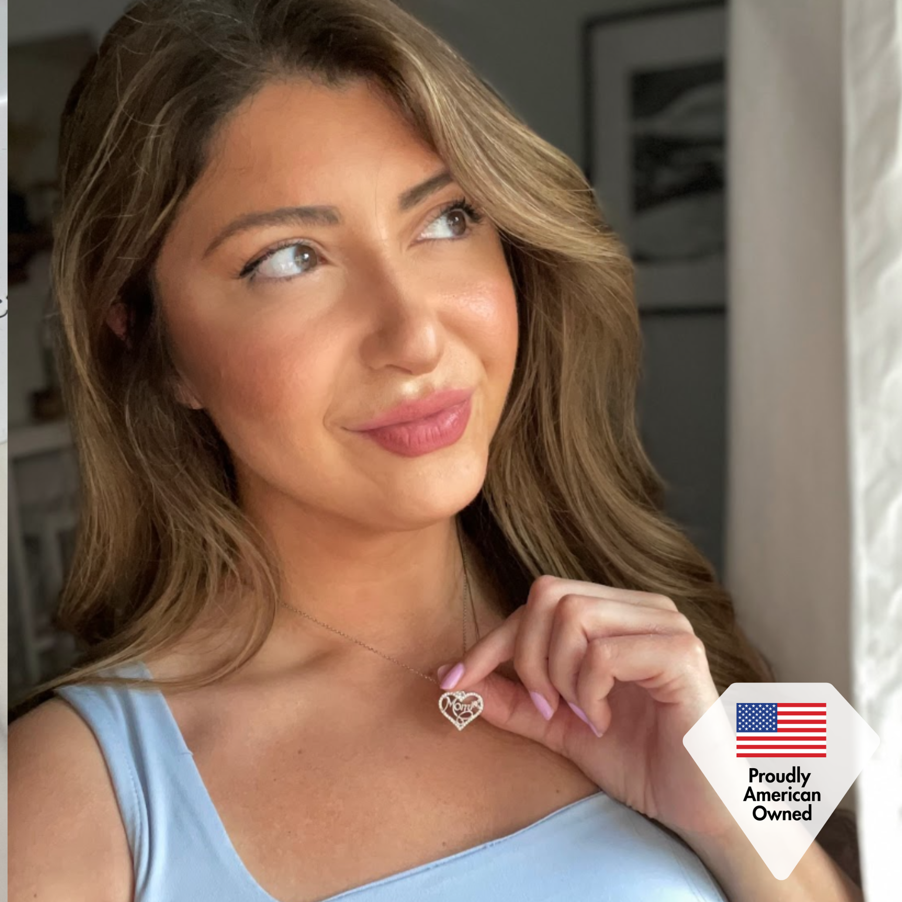 Rhonda 18k White Gold Plated Mom Heart Necklace with Swarovski Crystals