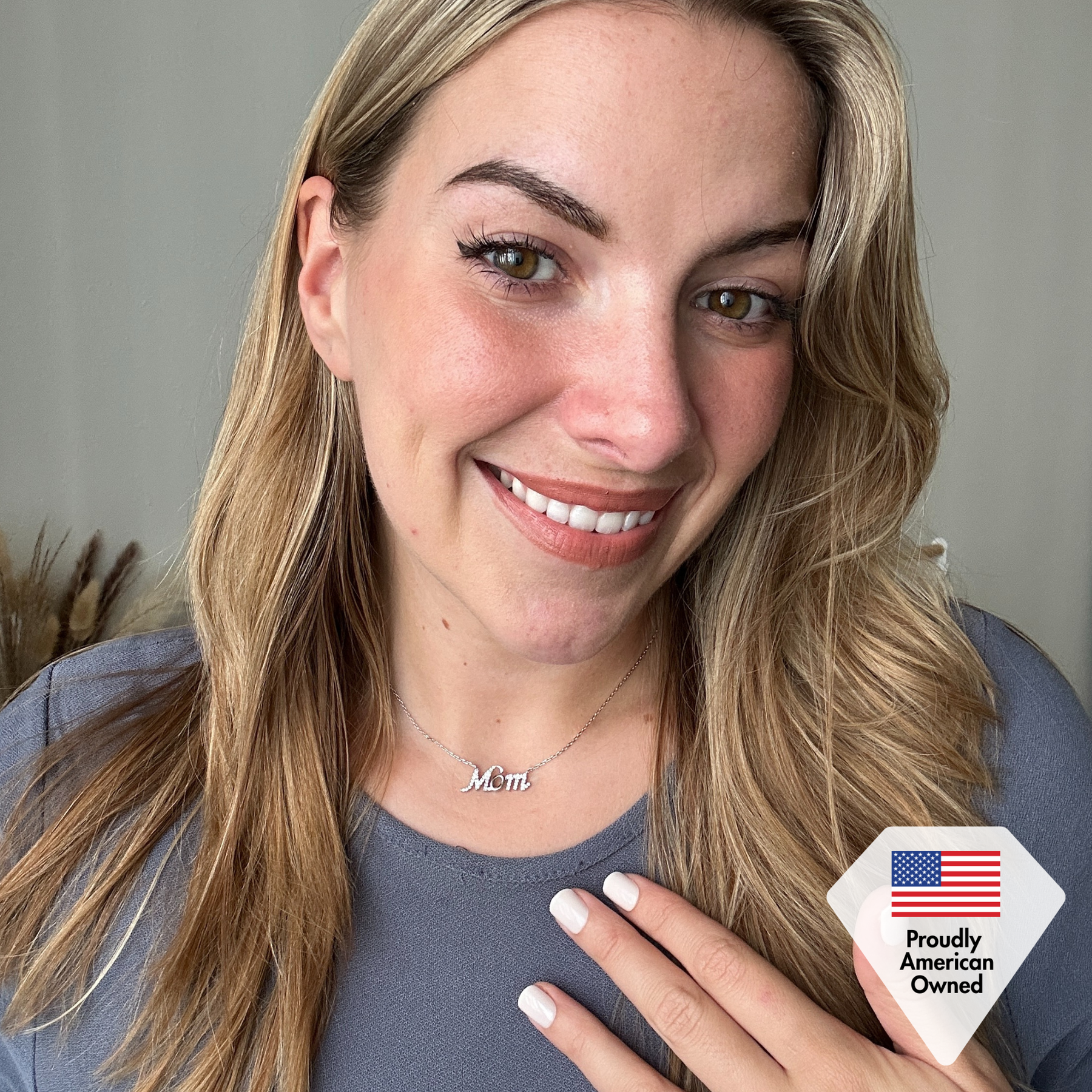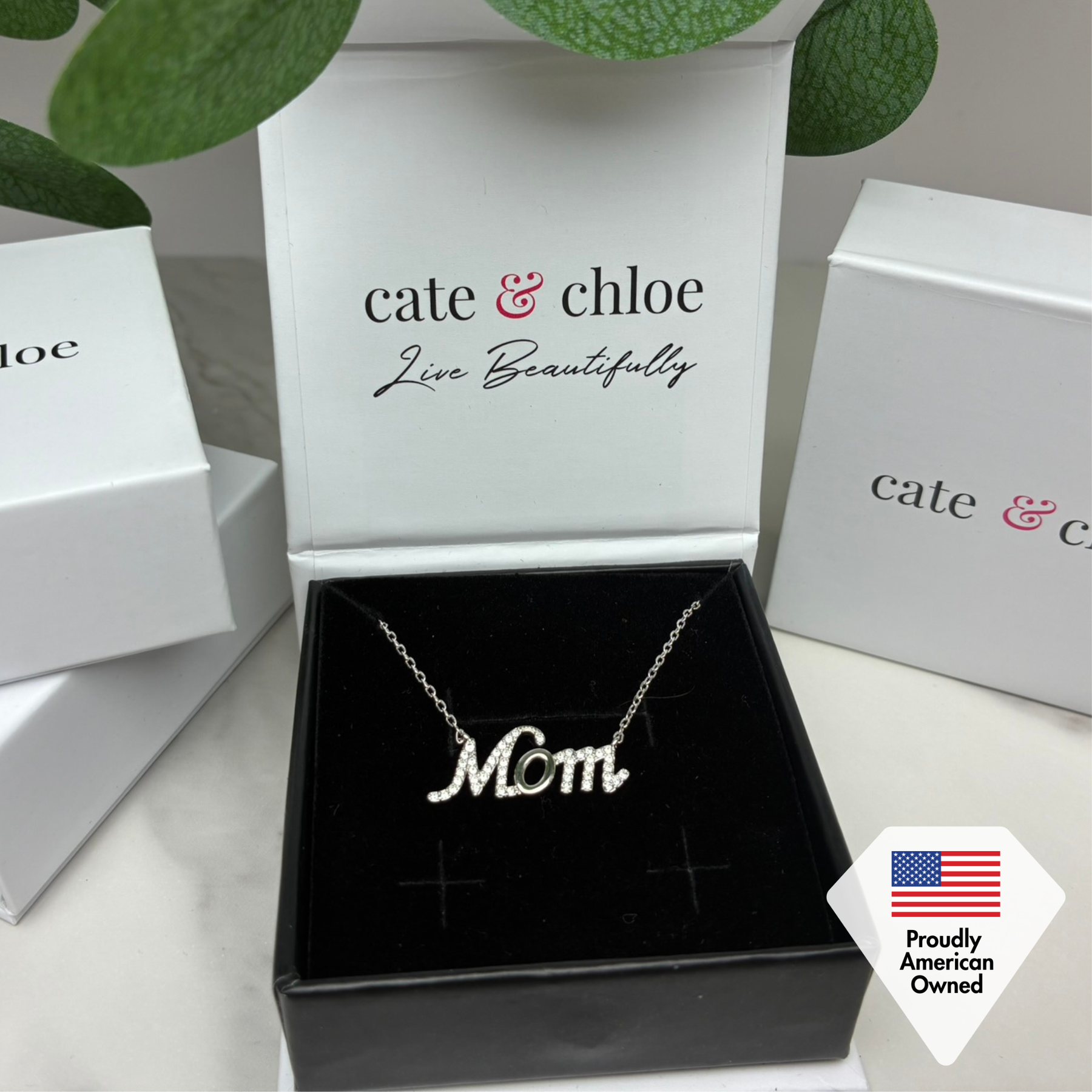 The Riley 18k White Gold Plated Mom Necklace is a timeless piece that celebrates the love and bond between a mother and her child. Featuring a graceful "MOM" inscription, this necklace is adorned with radiant Swarovski® crystals, adding a brilliant sparkle to its elegant design. Crafted from hypoallergenic brass and plated with luxurious 18k white gold, it offers both lasting shine and comfort. Perfect for Mother's Day or any special occasion, the Riley necklace comes beautifully packaged in a Cate & Chloe gift box, making it a thoughtful and cherished gift for the amazing mom in your life.