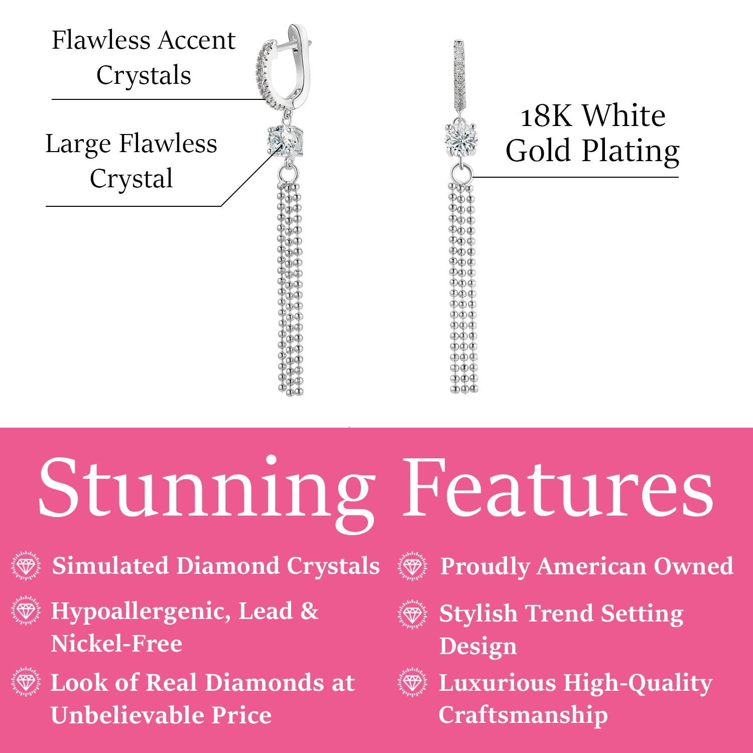 用我们的 Raya 18k 白金镀金环形吊坠耳环提升您的优雅气质。这些耳环饰有 AAA+ 级立方氧化锆晶体,配有2 颗耀眼的圆形切割宝石和 24 颗点缀宝石,确保光芒四射。悬挂的球链为经典的圆环设计增添了俏皮感。
