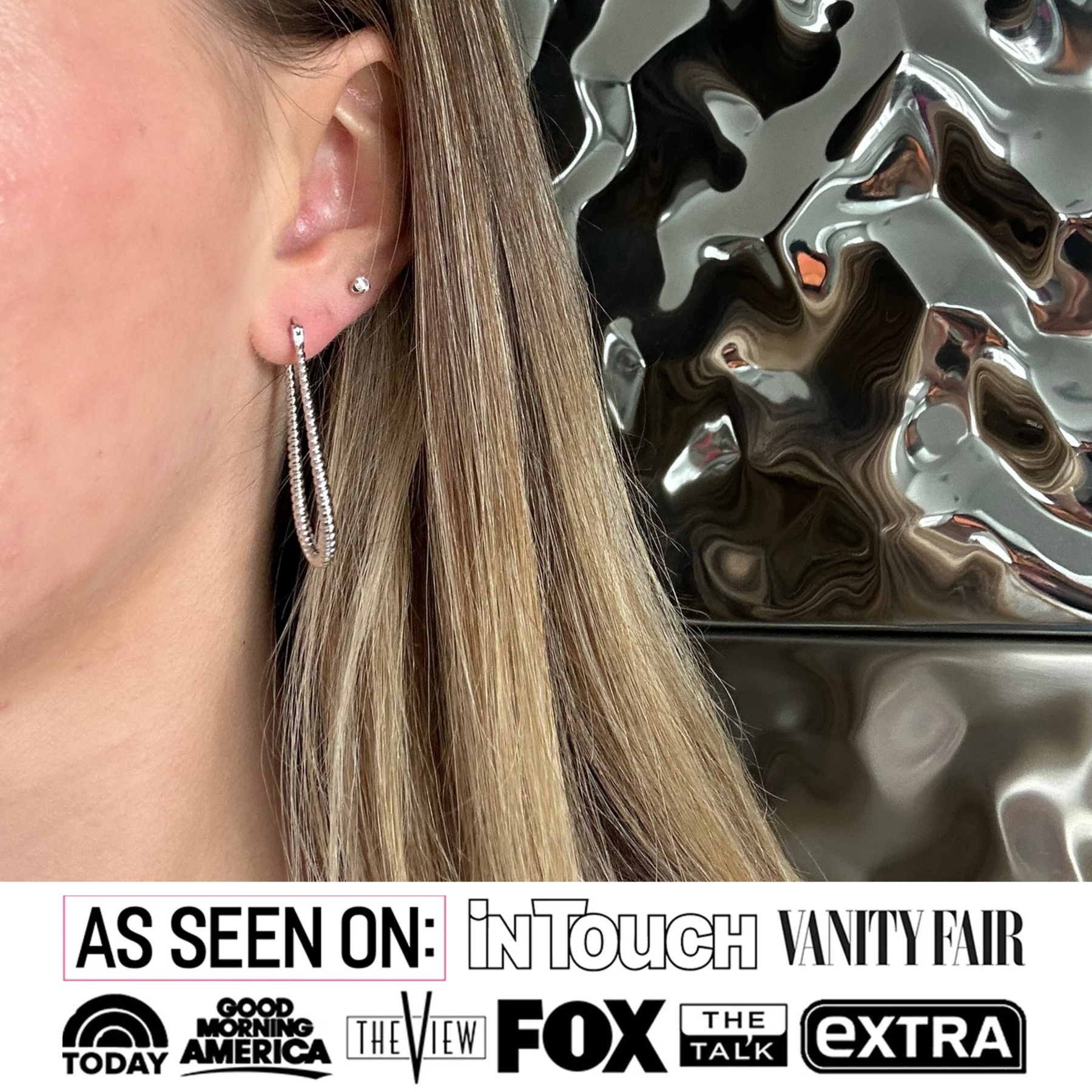 Elevate your everyday style with the Angelica 18K White Gold Plated 24mm Twisted U-Shaped Hoop Earrings from Cate & Chloe Jewelry. Featuring a modern twisted design and luminous 18K white gold plating, these lightweight hoops transition effortlessly from the office to evening events. Perfect for yourself or as a gift, Angelica earrings add timeless elegance to any collection.