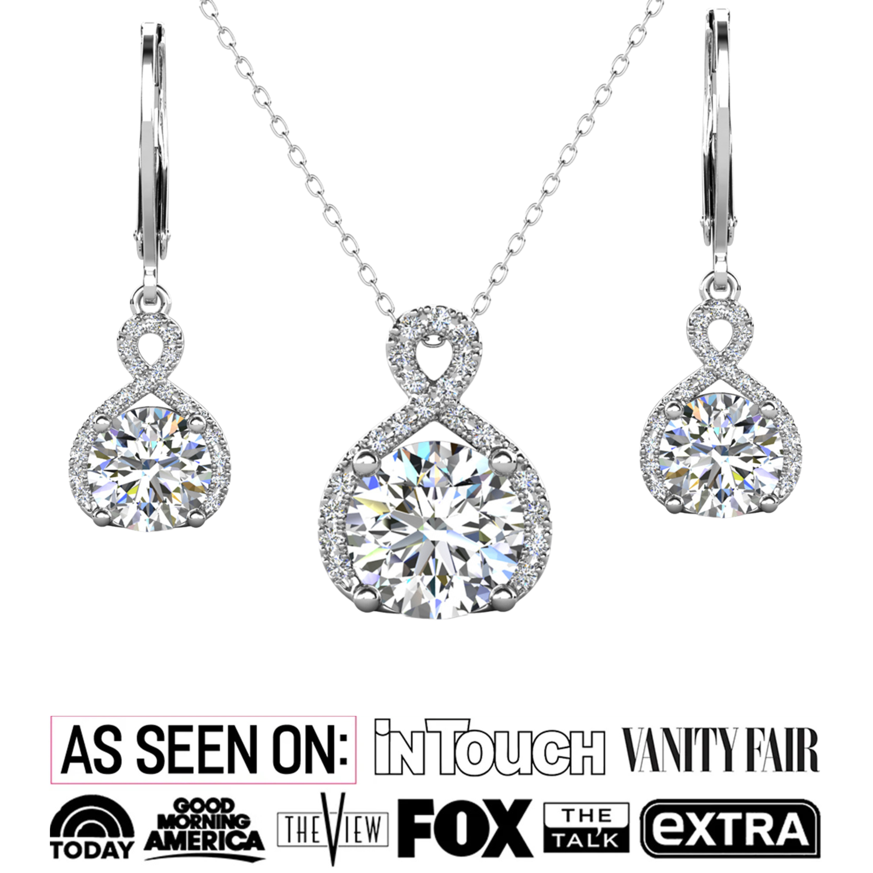 Alessandra 18k White Gold Plated Infinity Earrings and Necklace Jewelry Set with Simulated Diamond Crystals