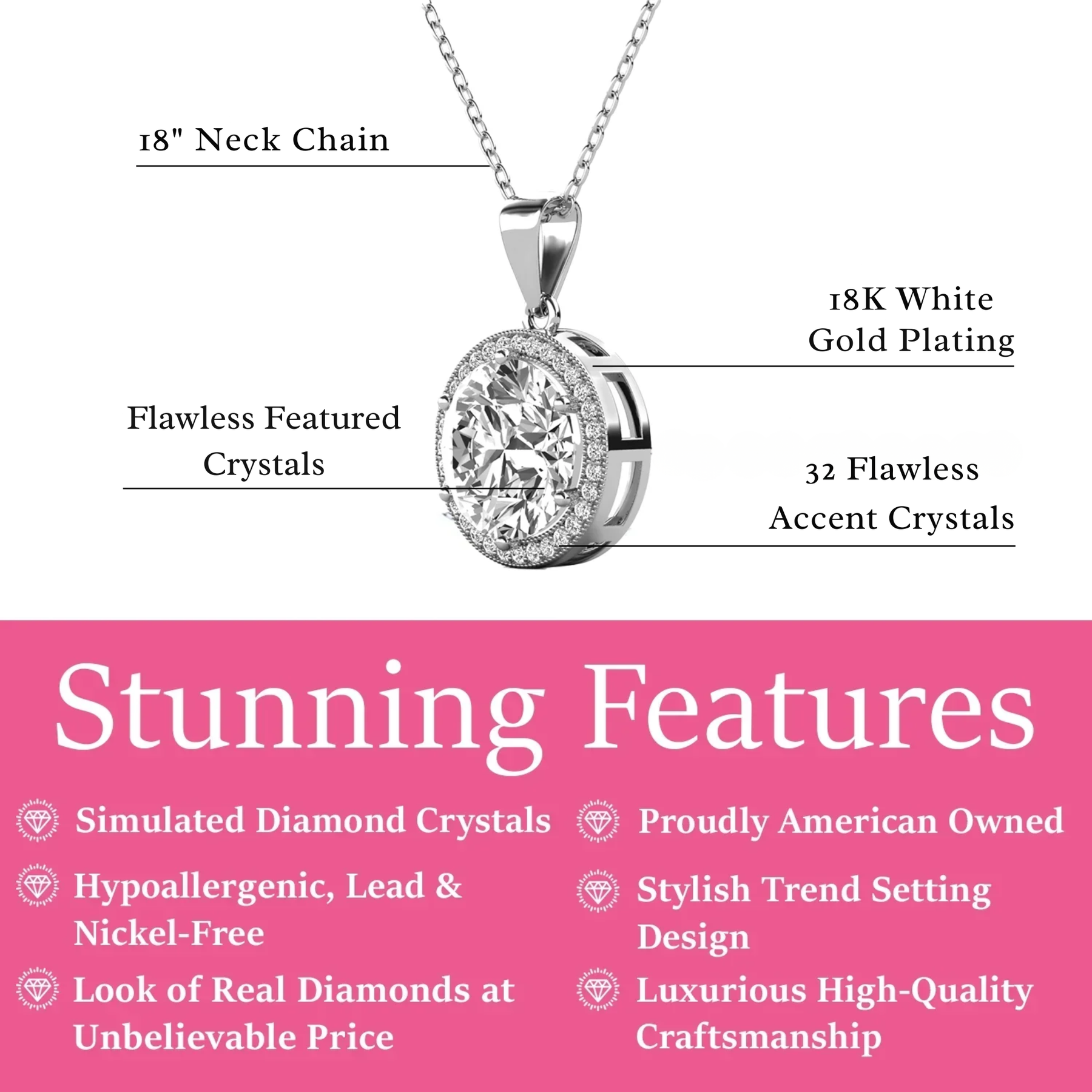 Sophia 女式 18k 白金镀 CZ 吊坠项链-这款 18k 白金镀金项链专为女性设计,采用光环设计,饰有精心制作的圆形切割水晶,闪闪发光。