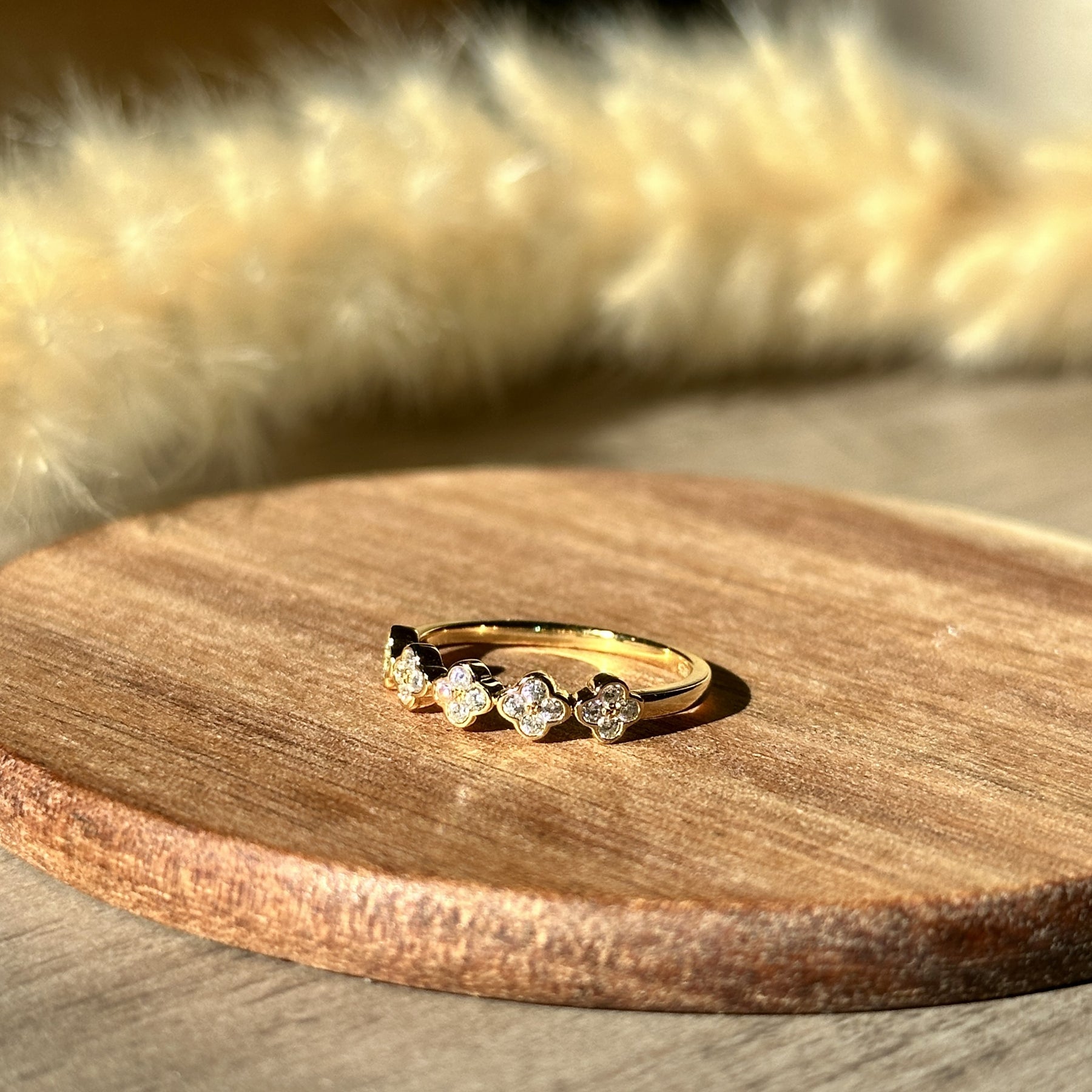 Linda 18k White Gold Plated Clover Flower Ring with Swarovski Crystals