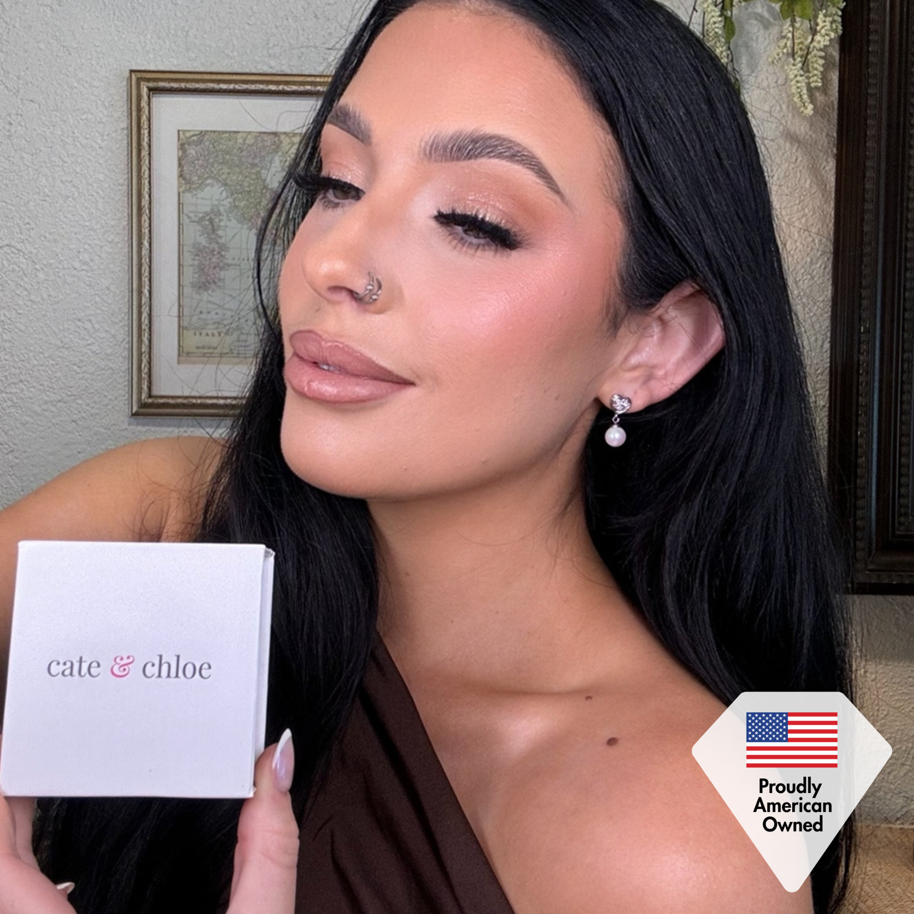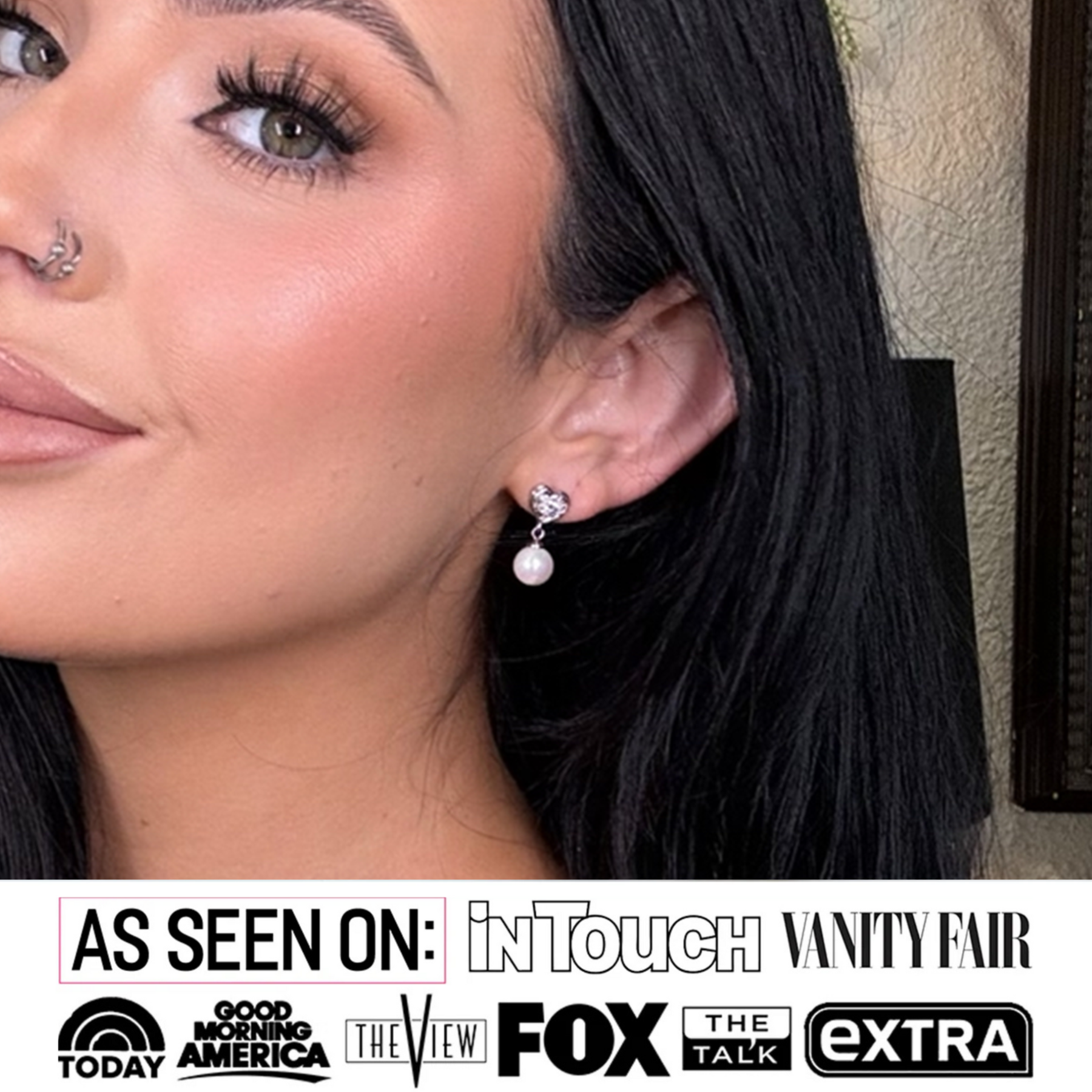 Kenley 18k 白金珍珠耳钉配心形施华洛世奇水晶