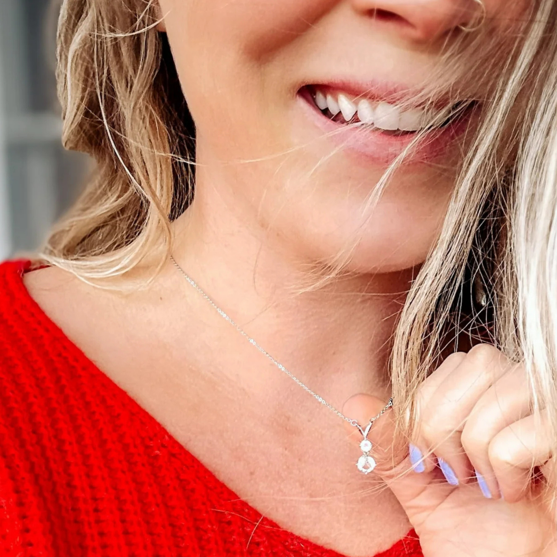 这款美丽的 2 颗宝石独特项链每当您戴上时都会引人注目。这款项链采用 2 颗圆形切割施华洛世奇水晶制成,镶嵌闪亮的 18k 白金镀层,将成为您适合所有特殊场合的新款项链。