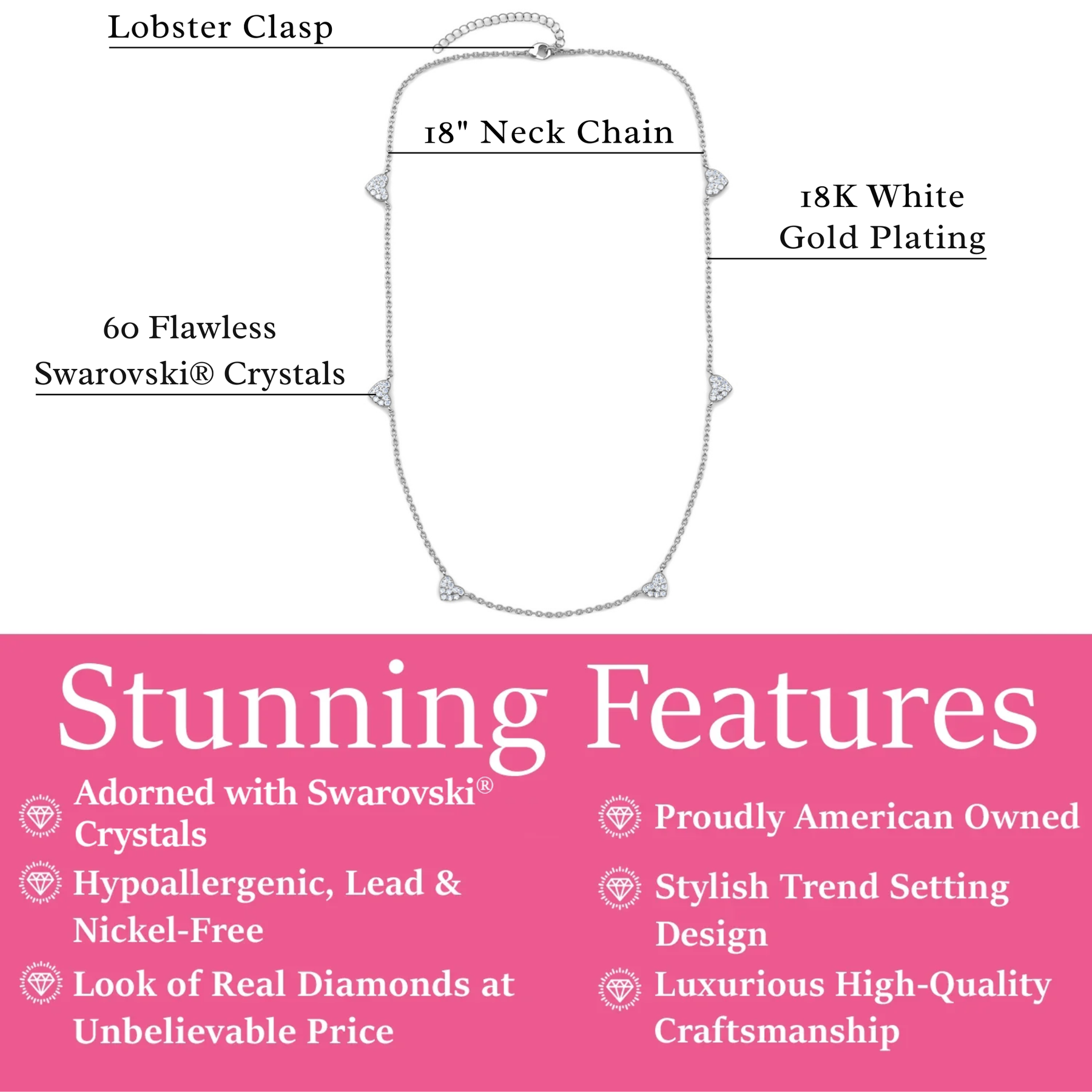 Irene 18k White Gold Plated Heart Station Necklace with Swarovski Crystals