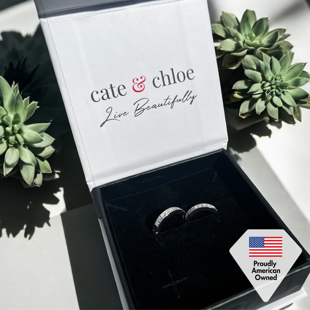 佩戴我们的 Lydia 18k 白金镀金环形耳环,尽享永恒的优雅。这款银色环形耳环饰有16 颗圆形切割仿钻石晶体,散发出精致气息。锁扣确保牢固贴合,而防过敏黄铜底座使其非常适合敏感的耳朵。这些经典环形耳环采用迷人的 C&C 品牌礼盒包装,是送给她的一份令人愉悦的礼物。